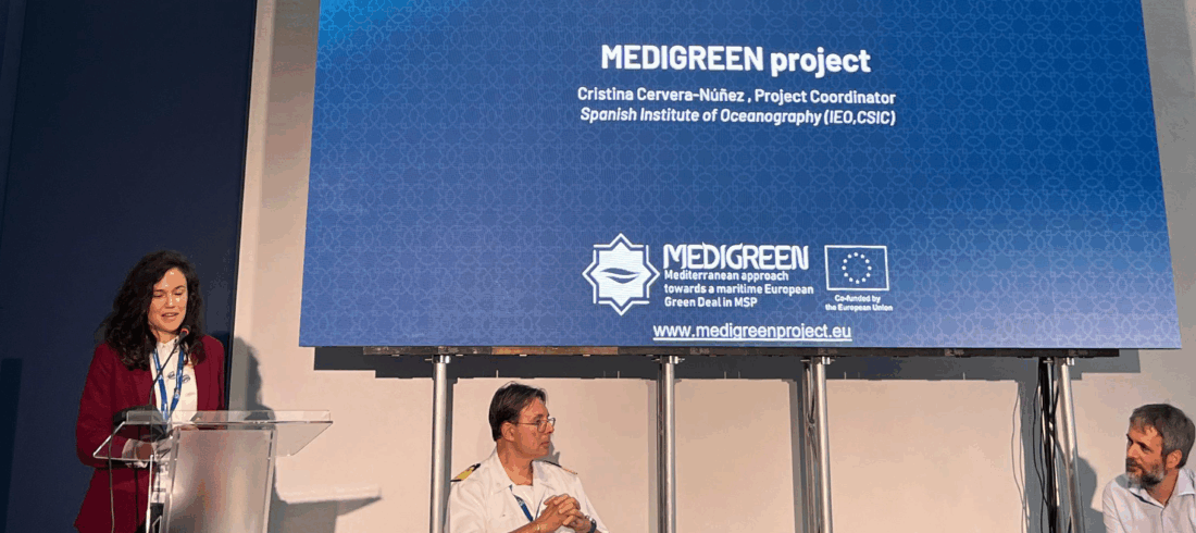 Project Coordinator presenting MEDIGREEN advancmeent on MSP data for sustainability.